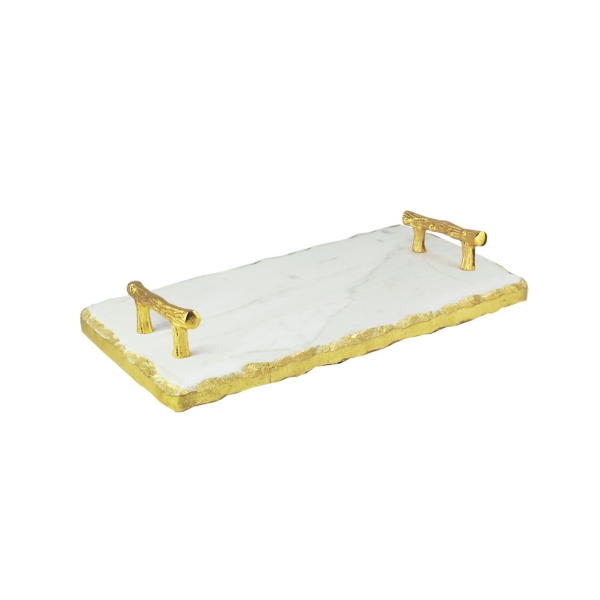 Gold metal battlesden mirrored tray etched sides 2 handles 58 cm x 23 cm x 10 cm. Marble white gray and blackoriginal:china mainland. Not only do platters help protect the surface of wood, metal and stone tabletops, they provide a level area to decorate tufted living room ottomans. White carrara marble tray with gold handle.